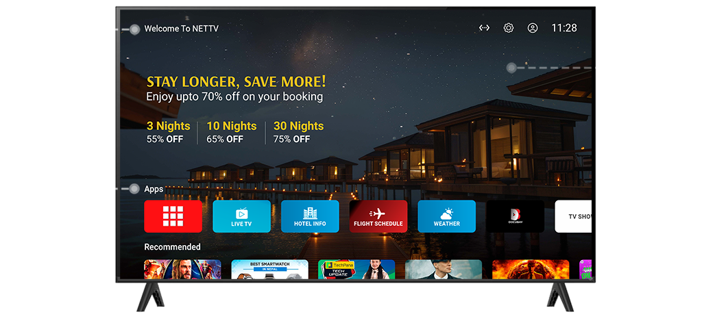 Transform the in-room experience with a sleek, hotel-branded IPTV interface that’s as smart as your guests expect.